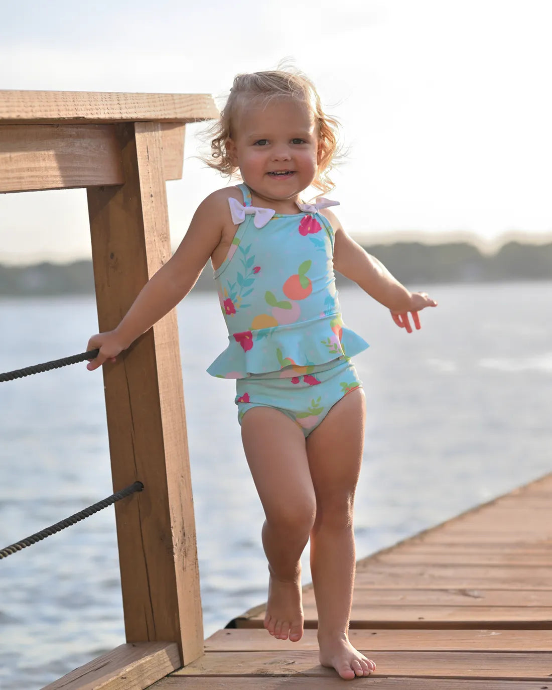 Featuring crossover straps and optional front bodice bows, Orchid adds a touch of whimsy to your baby's swimwear collection. The high-waisted bottoms provide full coverage. You have the option to sew it with a bodice flounce that gracefully covers the tummy, creating a flattering silhouette. Alternatively, you can opt for a simple bodice design that adds just the right amount of skin-baring appeal.