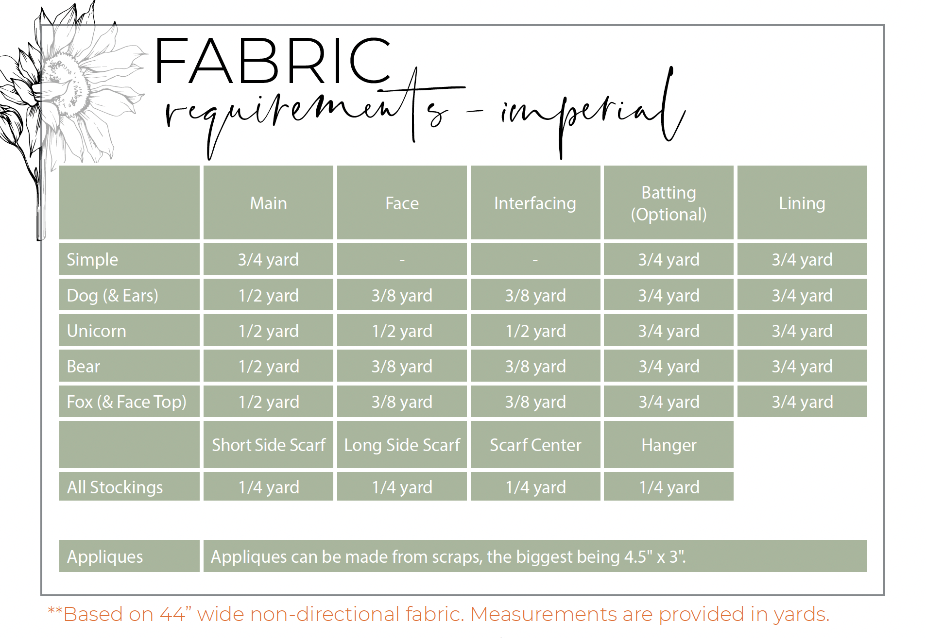 The Cinnamon Stockings PDF sewing pattern is a delightful addition to your cherished family tradition! These stockings are designed to bring joy and merriment to your mantle with their whimsical animal faces. Crafted with meticulous attention to detail, they are fully lined and built to last for years, becoming treasured keepsakes for generations to come. With Cinnamon, you'll have a choice of 5 adorable animal options, as well as a simple design for those seeking a more classic look. And let's not forget their generous size, perfect for Santa to fill with abundant magic and cheer. Embrace the spirit of the season and create lasting memories with the Cinnamon Stockings PDF sewing pattern!