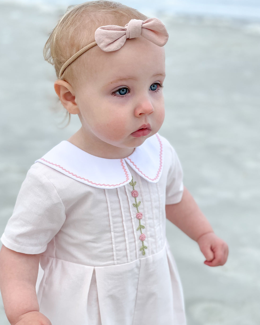 Introducing Greenway, where timeless elegance meets playful charm! Inspired by the classic designs of the 1920s, Greenway features details such as scalloped cuffs and collar, delicate pintucks, darling tabs, and charming angled pockets. Every stitch exudes vintage elegance, perfect for creating a sweet dressed-up look for your precious little bundle.