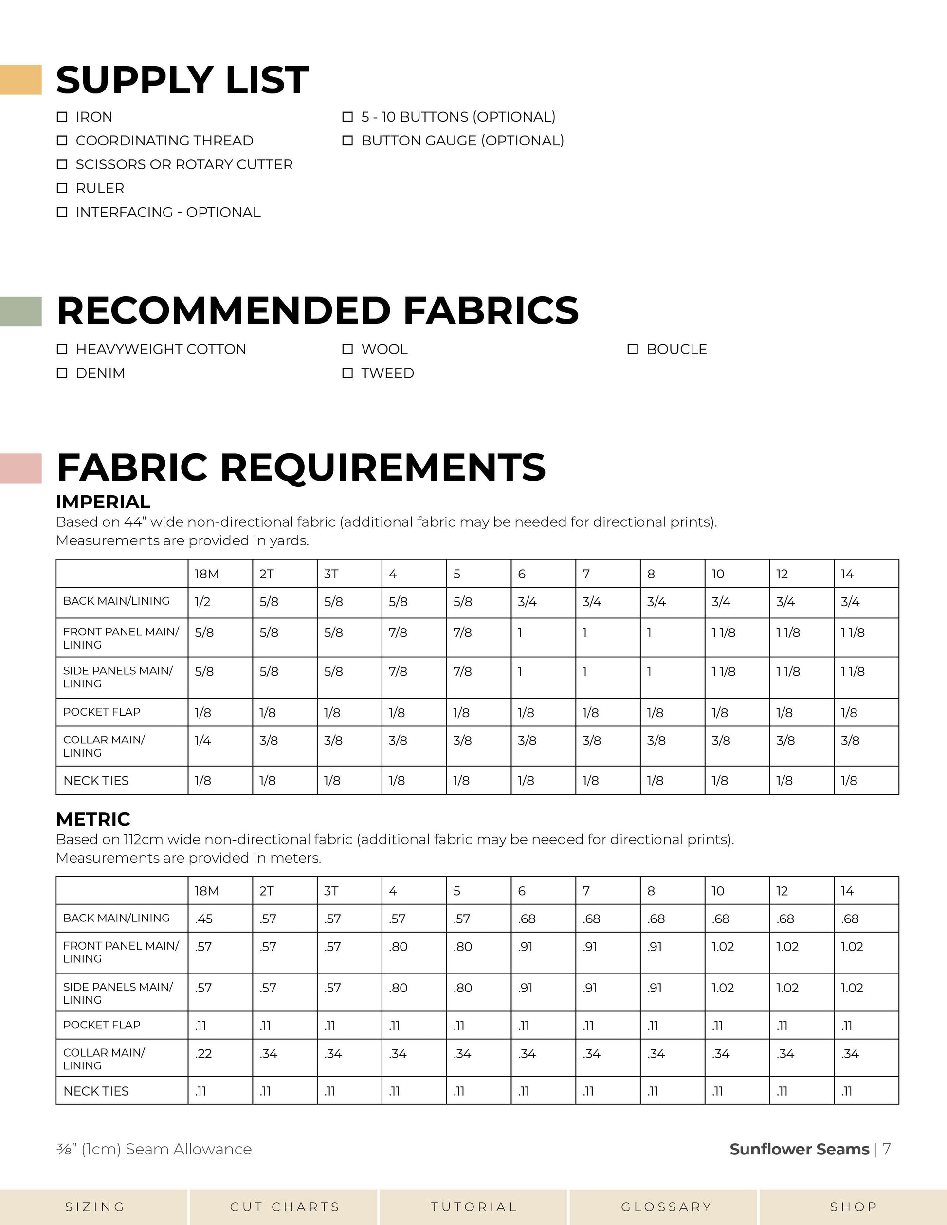 This listing is for a digital PDF file, not a physical product. This pattern is available via INSTANT download. This link will be sent automatically to the email used during the purchase transaction. Refunds or exchanges for Sunflower Seams Pattern Co. are not available. Pattern pieces are all computer drawn with the exception of square or rectangle pattern pieces, which are listed in a cutting chart to save you paper & ink.