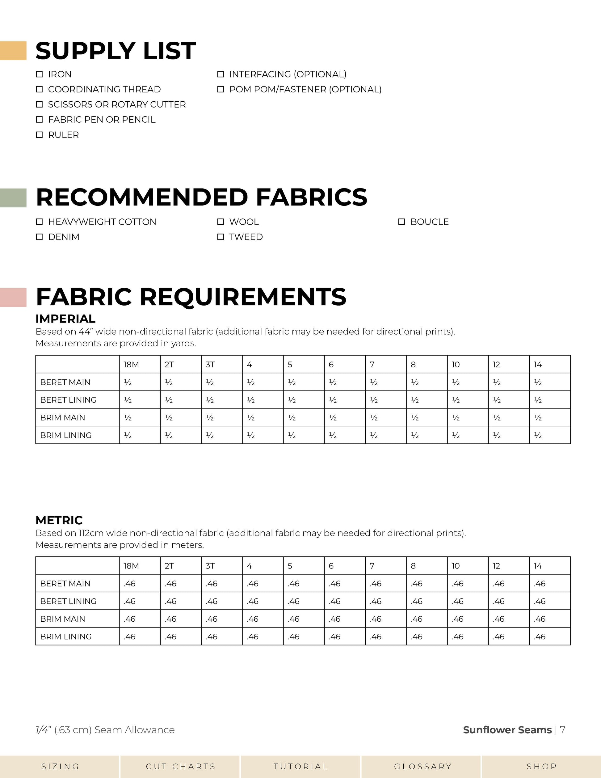 Juniper is a beret style pattern perfect for both beginners and seasoned sewist. This pattern not only offers a classic design but also includes an optional topper for those who want to elevate the look.