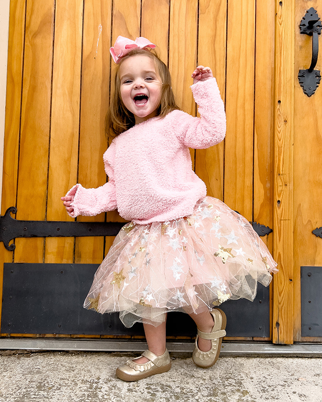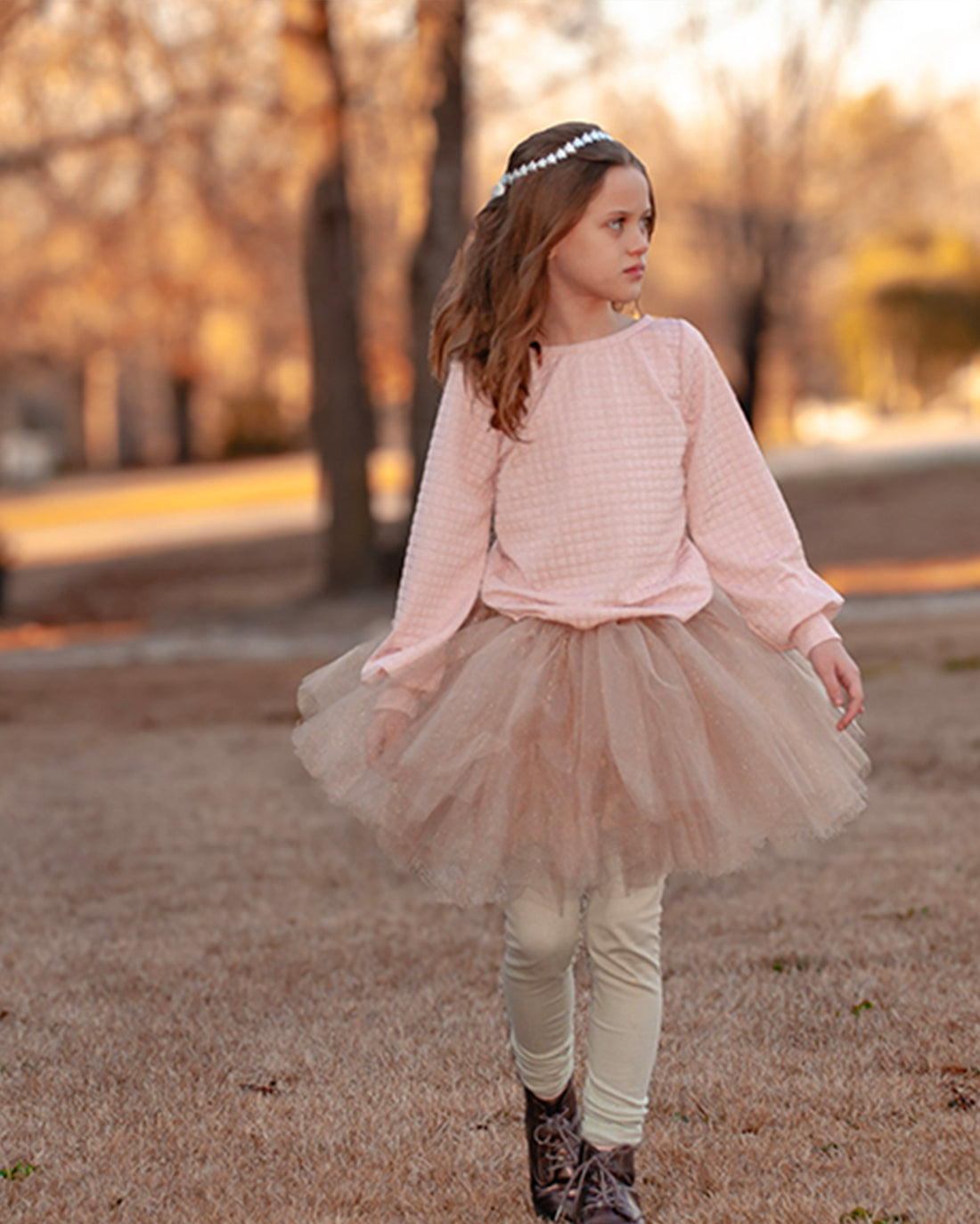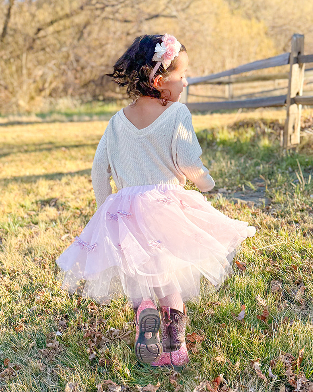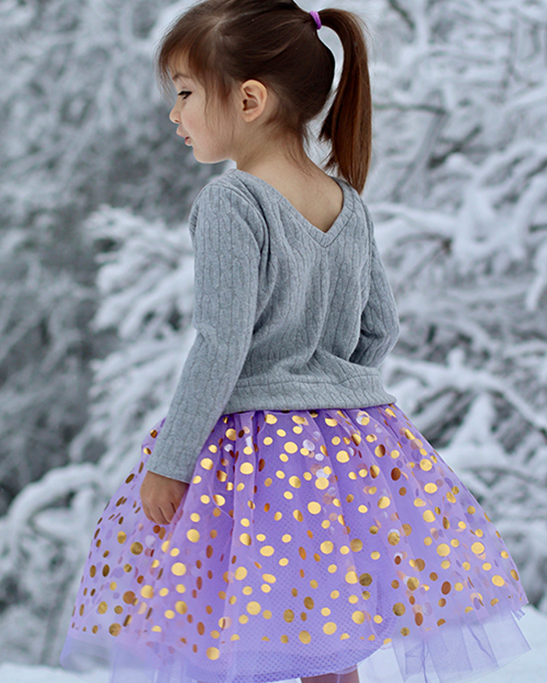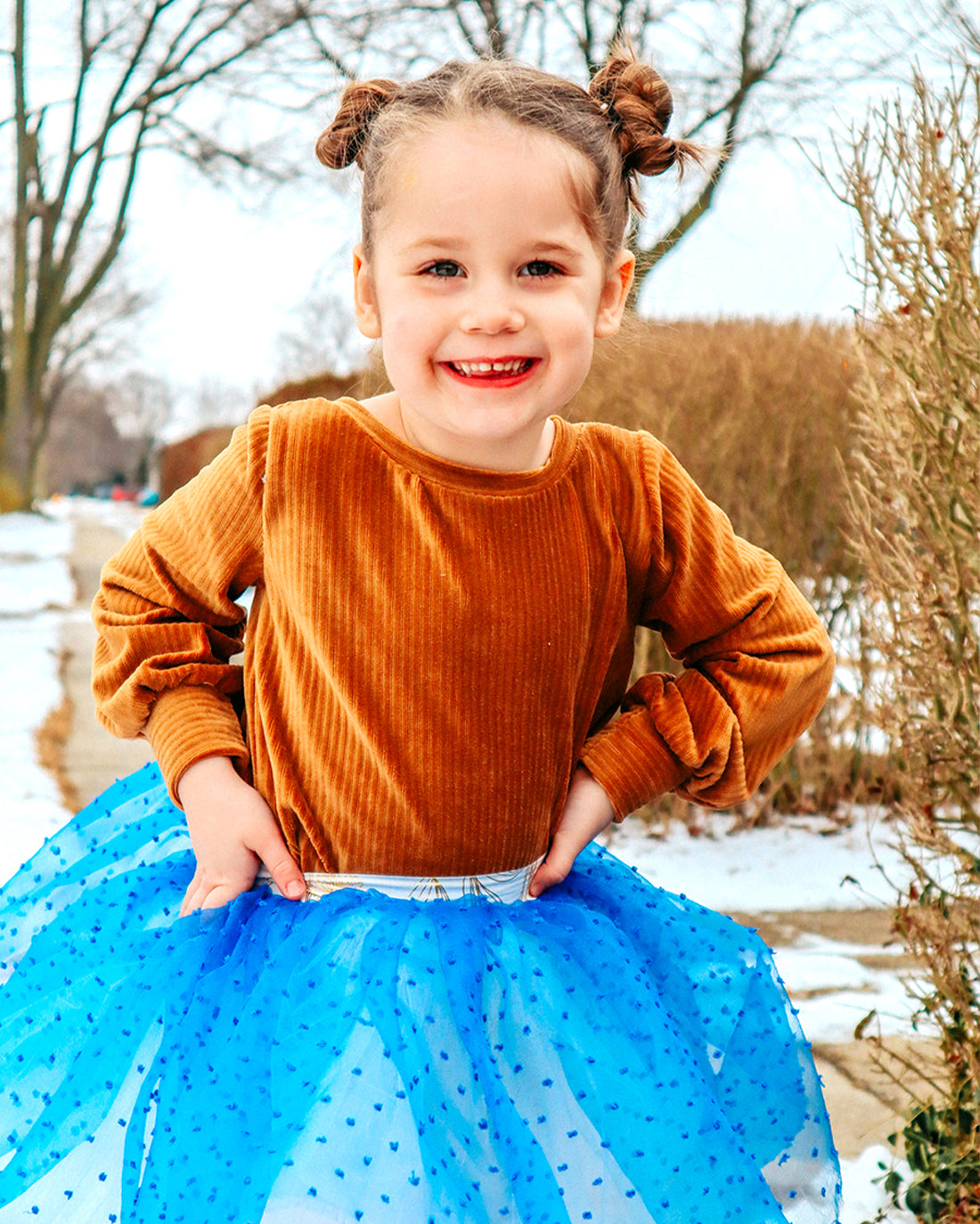 Romy is a whimsical and twirl-worthy 3-layered tulle skirt. Perfect for dress-up days, special occasions, or just adding a little magic to everyday adventures, this easy-to-follow pattern will have your little one spinning with joy!