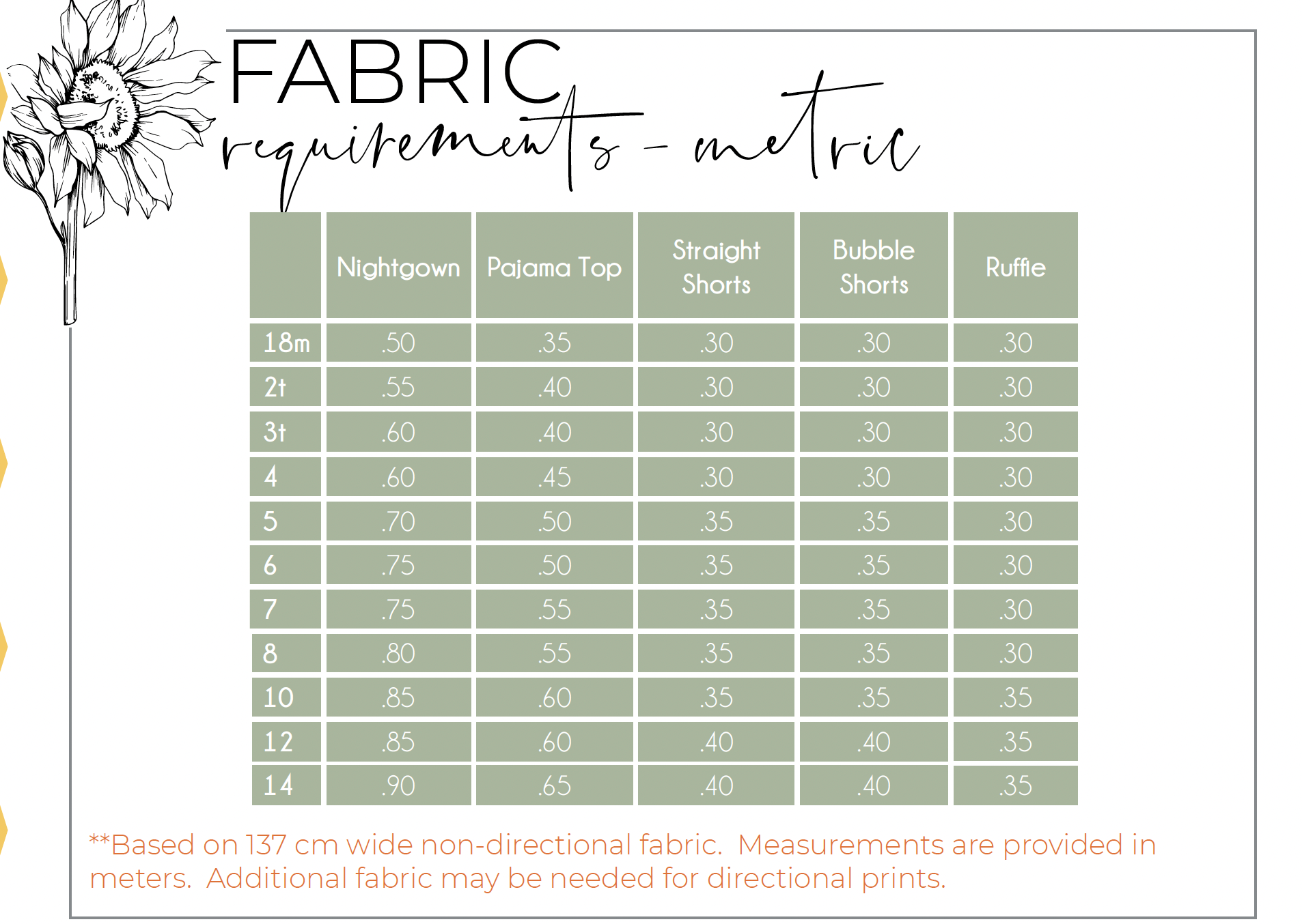 This listing is for a digital PDF file, not a physical product. This pattern is available via INSTANT download. This link will be sent automatically to the email used during the purchase transaction. Refunds or exchanges for Sunflower Seams Pattern Co. are not available. Pattern pieces are all computer drawn with the exception of square or rectangle pattern pieces, which are listed in a cutting chart to save you paper & ink.