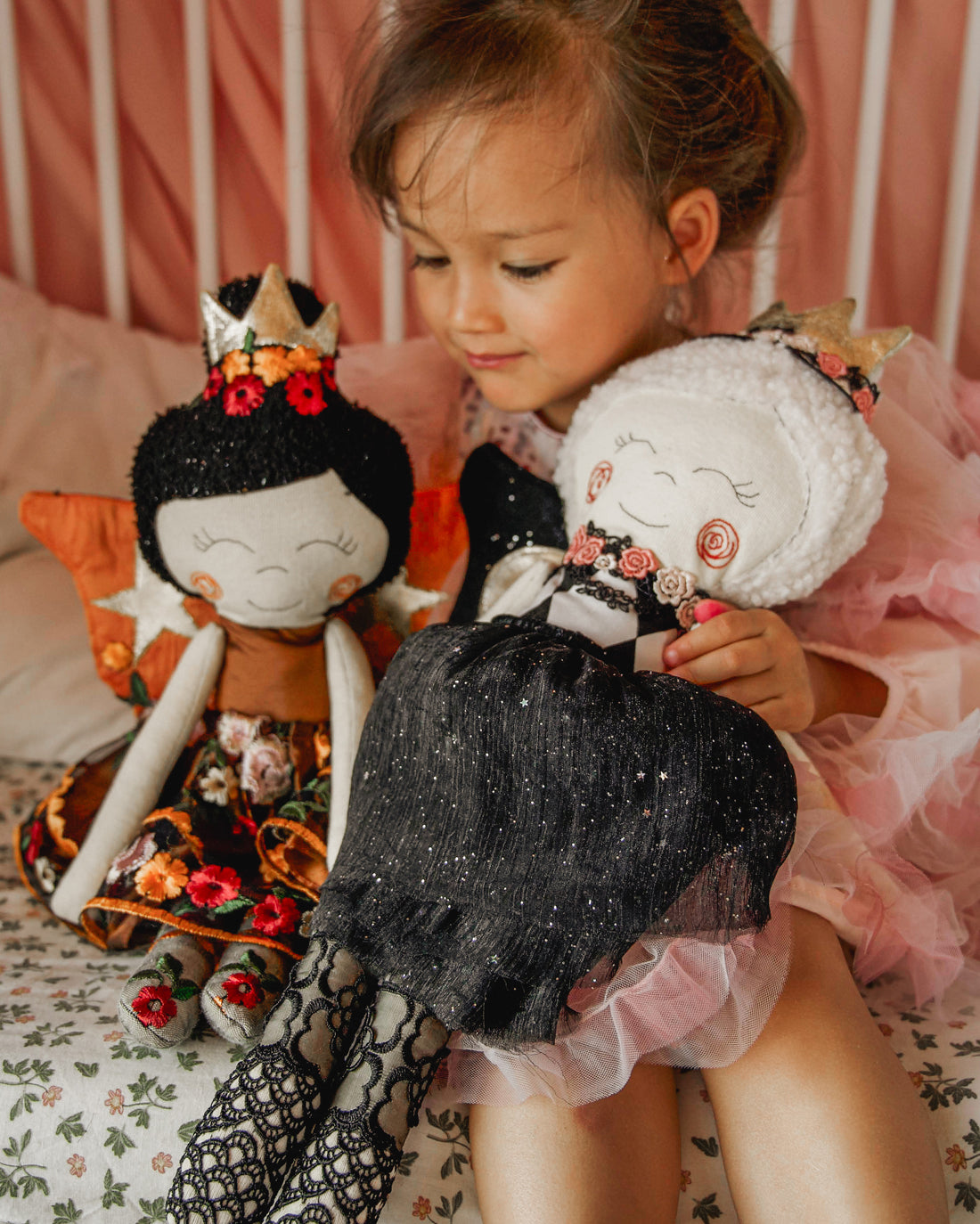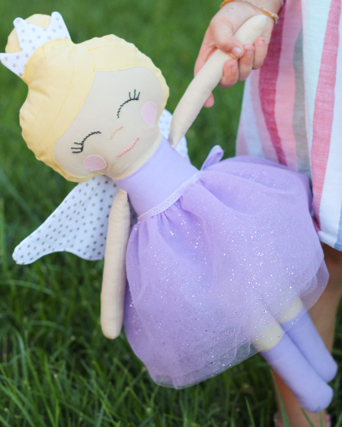 The Peony doll is an 18" stuffed ragdoll with optional crown and wings to transform her into a fairy princess! The perfect beginner project that will quickly become a beloved, treasured friend and playmate!
