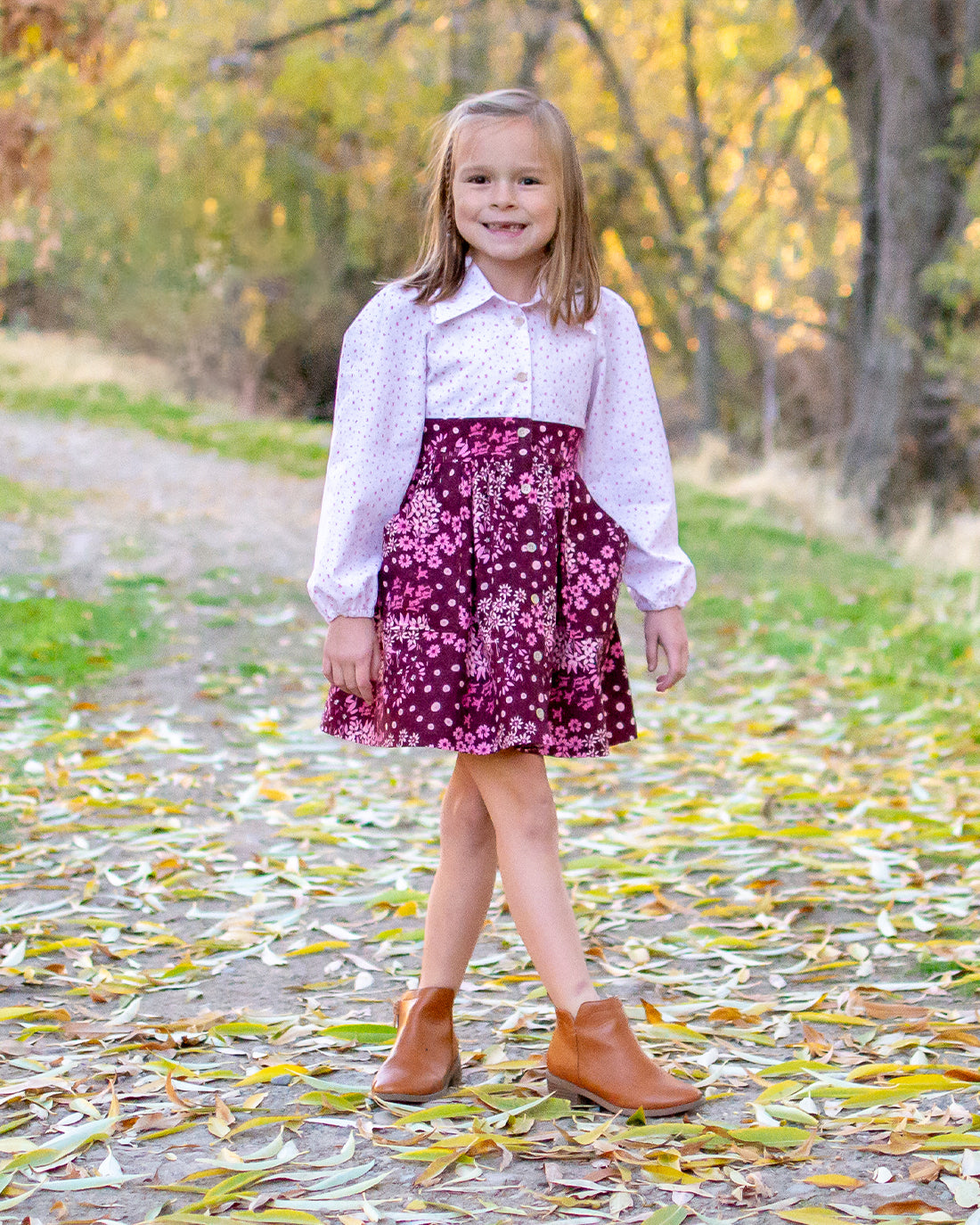 Crafted for woven fabrics, Seraphina can be tailored with a vintage or dress-length skirt and features both short and long puffed, elasticized sleeves. The partially lined bodice includes a button-front closure, a distinctive split back yoke with a gathered back, a classic collar with a collar stand, and a structured waistband. Seraphina also comes with options for pockets and adorable ruffle accents on the collar, pockets, and waistband—perfect for adding a bit of extra flair.