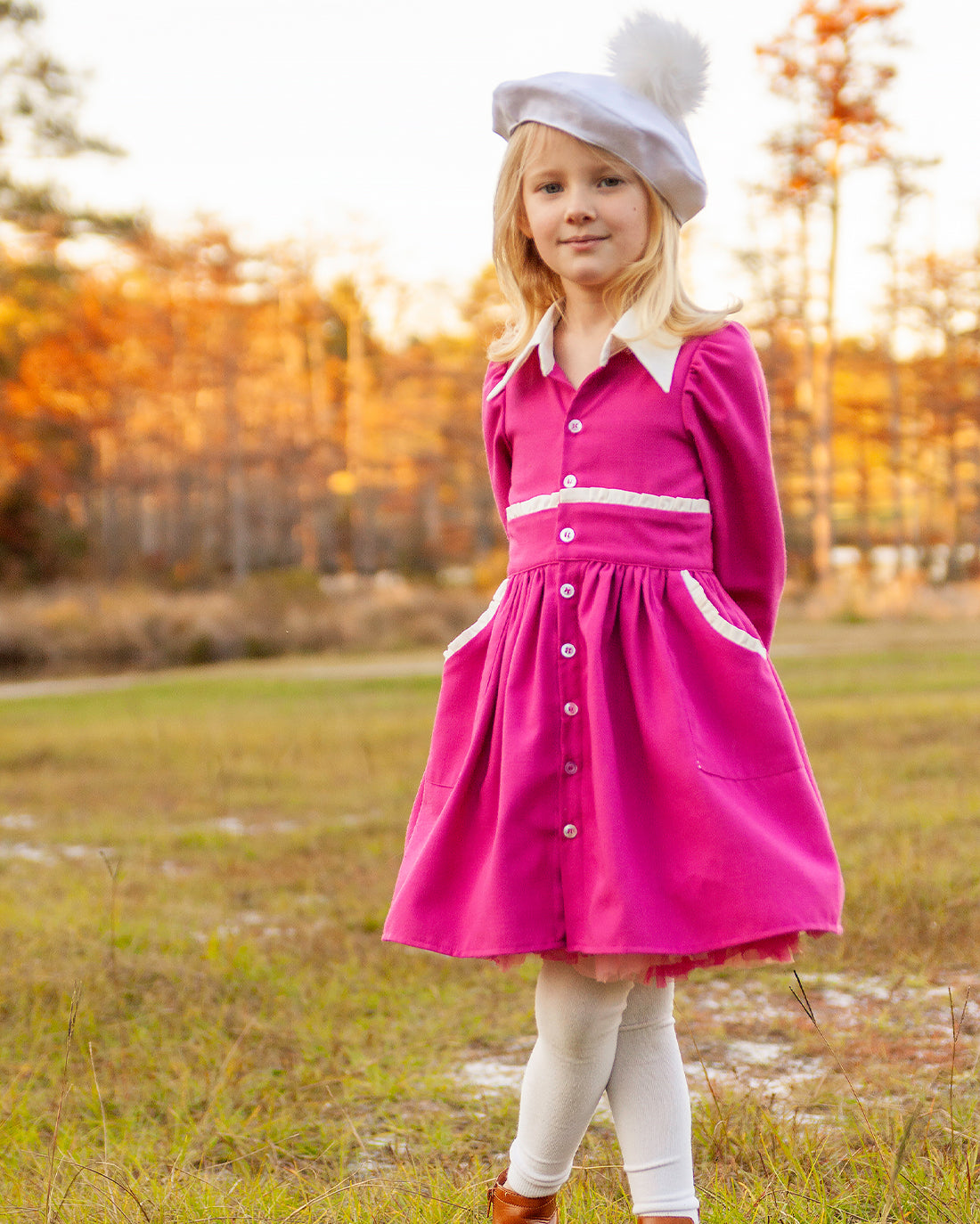 - Optional Ruffled Collar, Pockets and Waistband