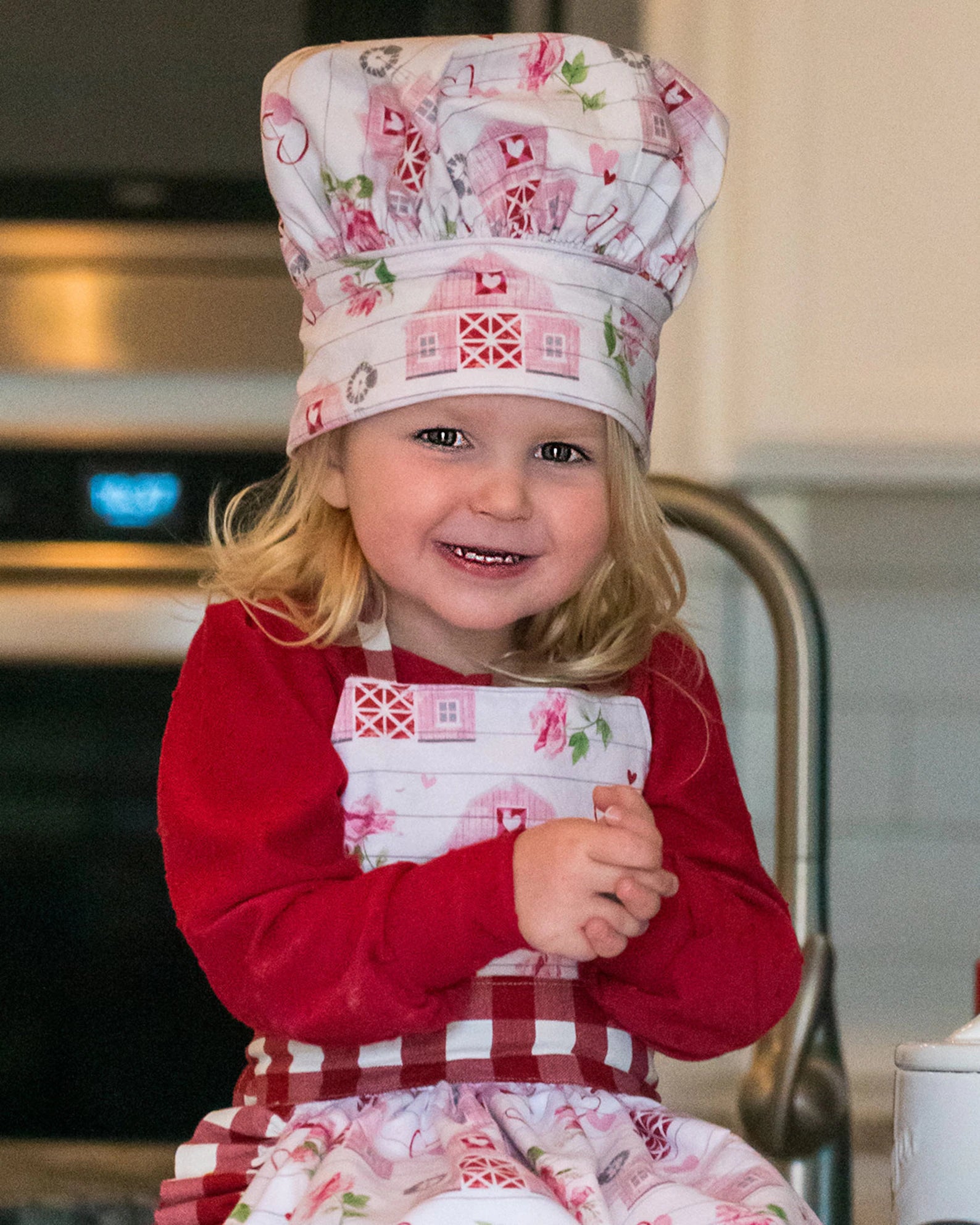 There is something that draws us to the kitchen as the perfect gathering place. Since you’re already there, you might as well make some snacks. Your little chef will need to accessorize with VANILLA, an adorable hat for making all of their favorite epicurean delights. Best of all, it’s reversible so you get two looks in one quick sew!